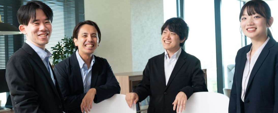 左から、加藤 舞華、坂元 拓也(OJTリーダー)、水谷 剛士、菅井 祐太(OJTリーダー)